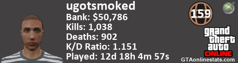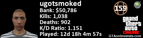 <a href="http://GTAonlinestats.com/showplayer/ugotsmoked"><img src="http://GTAonlinestats.com/signature/ugotsmoked/sig.png" alt="ugotsmoked" border="0" /></a>