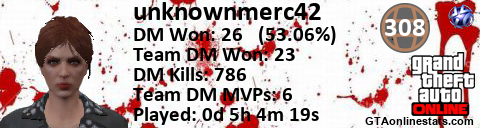 <a href="http://GTAonlinestats.com/showplayer/unknownmerc42"><img src="http://GTAonlinestats.com/dmsignature/unknownmerc42/sig.png" alt="unknownmerc42" border="0" /></a>