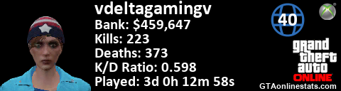 <a href="http://GTAonlinestats.com/showplayer/vdeltagamingv"><img src="http://GTAonlinestats.com/randomsignature/vdeltagamingv/sig.png" alt="vDeltaGamingv" border="0" /></a>