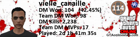 [URL=http://GTAonlinestats.com/showplayer/vielle_canaille][IMG]http://GTAonlinestats.com/dmsignature/vielle_canaille/sig.png[/IMG][/URL]