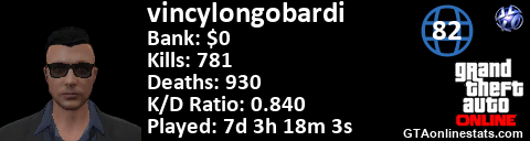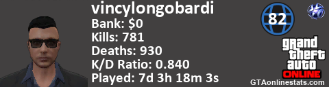 [URL=http://GTAonlinestats.com/showplayer/vincylongobardi][IMG]http://GTAonlinestats.com/signature/vincylongobardi/sig.png[/IMG][/URL]