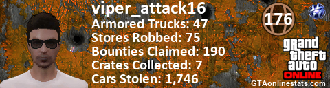 <a href="http://GTAonlinestats.com/showplayer/viper_attack16"><img src="http://GTAonlinestats.com/randomsignature/viper_attack16/sig.png" alt="viper_attack16" border="0" /></a>