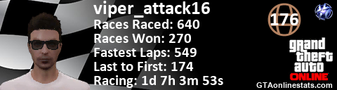 <a href="http://GTAonlinestats.com/showplayer/viper_attack16"><img src="http://GTAonlinestats.com/racesignature/viper_attack16/sig.png" alt="viper_attack16" border="0" /></a>