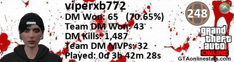 [URL=http://GTAonlinestats.com/showplayer/viperxb772][IMG]http://GTAonlinestats.com/dmsignature/viperxb772/sig.png[/IMG][/URL]