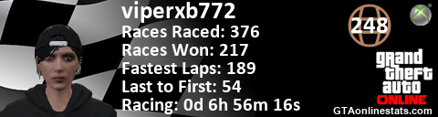<a href="http://GTAonlinestats.com/showplayer/viperxb772"><img src="http://GTAonlinestats.com/racesignature/viperxb772/sig.png" alt="viperxb772" border="0" /></a>