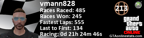 [URL=http://GTAonlinestats.com/showplayer/vmann828][IMG]http://GTAonlinestats.com/racesignature/vmann828/sig.png[/IMG][/URL]