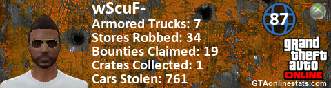 [URL=http://GTAonlinestats.com/showplayer/wScuF-][IMG]http://GTAonlinestats.com/crimesignature/wScuF-/sig.png[/IMG][/URL]