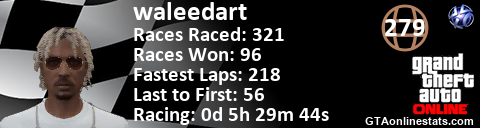 <a href="http://GTAonlinestats.com/showplayer/waleedart"><img src="http://GTAonlinestats.com/racesignature/waleedart/sig.png" alt="waleedart" border="0" /></a>