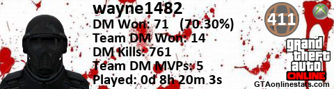 <a href="http://GTAonlinestats.com/showplayer/wayne1482"><img src="http://GTAonlinestats.com/dmsignature/wayne1482/sig.png" alt="wayne1482" border="0" /></a>