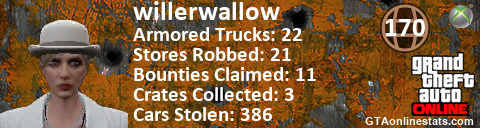 [URL=http://GTAonlinestats.com/showplayer/willerwallow/2][IMG]http://GTAonlinestats.com/crimesignature/willerwallow/2/sig.png[/IMG][/URL]