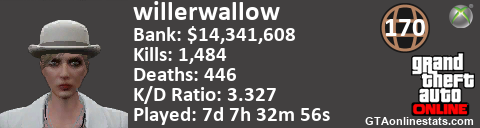 [URL=http://GTAonlinestats.com/showplayer/willerwallow/2][IMG]http://GTAonlinestats.com/randomsignature/willerwallow/2/sig.png[/IMG][/URL]