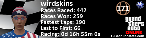 [URL=http://GTAonlinestats.com/showplayer/wirdskins][IMG]http://GTAonlinestats.com/racesignature/wirdskins/sig.png[/IMG][/URL]