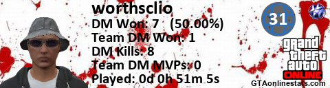 [URL=http://GTAonlinestats.com/showplayer/worthsclio/2][IMG]http://GTAonlinestats.com/dmsignature/worthsclio/2/sig.png[/IMG][/URL]