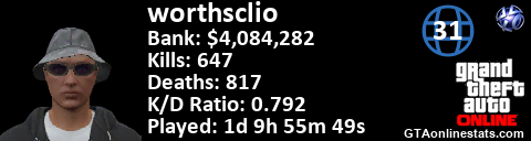 <a href="http://GTAonlinestats.com/showplayer/worthsclio/2"><img src="http://GTAonlinestats.com/signature/worthsclio/2/sig.png" alt="worthsclio" border="0" /></a>