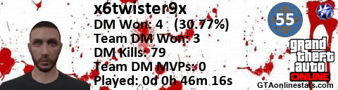 [URL=http://GTAonlinestats.com/showplayer/x6twister9x][IMG]http://GTAonlinestats.com/dmsignature/x6twister9x/sig.png[/IMG][/URL]