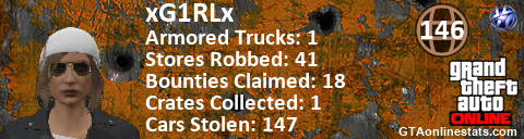 <a href="http://GTAonlinestats.com/showplayer/xG1RLx"><img src="http://GTAonlinestats.com/crimesignature/xG1RLx/sig.png" alt="xG1RLx" border="0" /></a>
