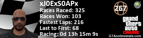 <a href="http://GTAonlinestats.com/showplayer/xJ0ExS0APx"><img src="http://GTAonlinestats.com/racesignature/xJ0ExS0APx/sig.png" alt="xJ0ExS0APx" border="0" /></a>