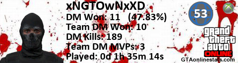 [URL=http://GTAonlinestats.com/showplayer/xNGTOwNxXD][IMG]http://GTAonlinestats.com/dmsignature/xNGTOwNxXD/sig.png[/IMG][/URL]