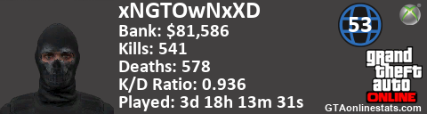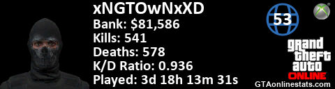 <a href="http://GTAonlinestats.com/showplayer/xNGTOwNxXD"><img src="http://GTAonlinestats.com/signature/xNGTOwNxXD/sig.png" alt="xNGTOwNxXD" border="0" /></a>
