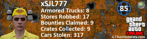 [URL=http://GTAonlinestats.com/showplayer/xSJL777][IMG]http://GTAonlinestats.com/crimesignature/xSJL777/sig.png[/IMG][/URL]