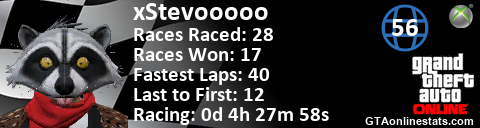 [URL=http://GTAonlinestats.com/showplayer/xStevooooo][IMG]http://GTAonlinestats.com/racesignature/xStevooooo/sig.png[/IMG][/URL]