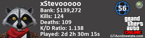 [URL=http://GTAonlinestats.com/showplayer/xStevooooo][IMG]http://GTAonlinestats.com/randomsignature/xStevooooo/sig.png[/IMG][/URL]