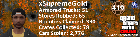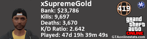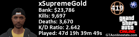 [URL=http://GTAonlinestats.com/showplayer/xSupremeGold][IMG]http://GTAonlinestats.com/dmsignature/xSupremeGold/sig.png[/IMG][/URL]