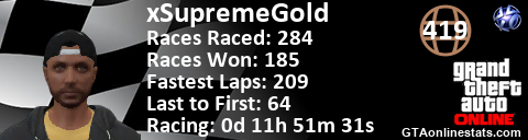 [URL=http://GTAonlinestats.com/showplayer/xSupremeGold][IMG]http://GTAonlinestats.com/racesignature/xSupremeGold/sig.png[/IMG][/URL]