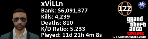 [URL=http://GTAonlinestats.com/showplayer/xViLLn][IMG]http://GTAonlinestats.com/dmsignature/xViLLn/sig.png[/IMG][/URL]