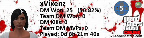 [URL=http://GTAonlinestats.com/showplayer/xVixenz/3][IMG]http://GTAonlinestats.com/dmsignature/xVixenz/3/sig.png[/IMG][/URL]