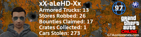 [URL=http://GTAonlinestats.com/showplayer/xX-aLeHD-Xx][IMG]http://GTAonlinestats.com/crimesignature/xX-aLeHD-Xx/sig.png[/IMG][/URL]
