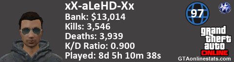 [URL=http://GTAonlinestats.com/showplayer/xX-aLeHD-Xx][IMG]http://GTAonlinestats.com/signature/xX-aLeHD-Xx/sig.png[/IMG][/URL]