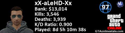 <a href="http://GTAonlinestats.com/showplayer/xX-aLeHD-Xx"><img src="http://GTAonlinestats.com/signature/xX-aLeHD-Xx/sig.png" alt="xX-aLeHD-Xx" border="0" /></a>