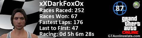 [URL=http://GTAonlinestats.com/showplayer/xXDarkFoxOx][IMG]http://GTAonlinestats.com/racesignature/xXDarkFoxOx/sig.png[/IMG][/URL]