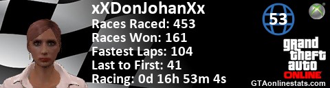 [URL=http://GTAonlinestats.com/showplayer/xXDonJohanXx][IMG]http://GTAonlinestats.com/racesignature/xXDonJohanXx/sig.png[/IMG][/URL]