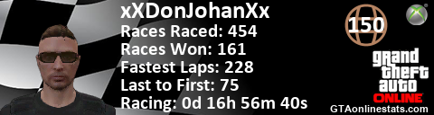 [URL=http://GTAonlinestats.com/showplayer/xXDonJohanXx/2][IMG]http://GTAonlinestats.com/racesignature/xXDonJohanXx/2/sig.png[/IMG][/URL]