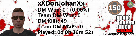 [URL=http://GTAonlinestats.com/showplayer/xXDonJohanXx/2][IMG]http://GTAonlinestats.com/signature/xXDonJohanXx/2/sig.png[/IMG][/URL]