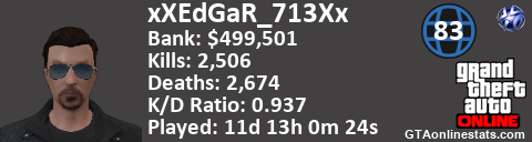 <a href="http://GTAonlinestats.com/showplayer/xXEdGaR_713Xx"><img src="http://GTAonlinestats.com/signature/xXEdGaR_713Xx/sig.png" alt="xXEdgar_713Xx" border="0" /></a>