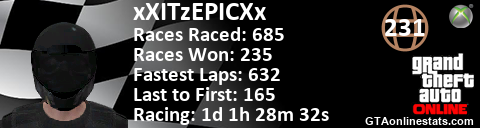 <a href="http://GTAonlinestats.com/showplayer/xXITzEPICXx"><img src="http://GTAonlinestats.com/racesignature/xXITzEPICXx/sig.png" alt="xXITzEPICXx" border="0" /></a>