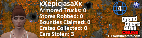 [URL=http://GTAonlinestats.com/showplayer/xXepicjasaXx/2][IMG]http://GTAonlinestats.com/crimesignature/xXepicjasaXx/2/sig.png[/IMG][/URL]