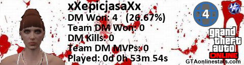 [URL=http://GTAonlinestats.com/showplayer/xXepicjasaXx/2][IMG]http://GTAonlinestats.com/dmsignature/xXepicjasaXx/2/sig.png[/IMG][/URL]