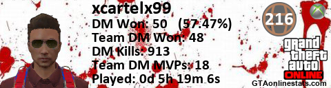 [URL=http://GTAonlinestats.com/showplayer/xcartelx99][IMG]http://GTAonlinestats.com/dmsignature/xcartelx99/sig.png[/IMG][/URL]