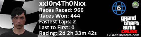 <a href="http://GTAonlinestats.com/showplayer/xxJ0n4Th0Nxx/2"><img src="http://GTAonlinestats.com/racesignature/xxJ0n4Th0Nxx/2/sig.png" alt="xxJ0n4Th0Nxx" border="0" /></a>