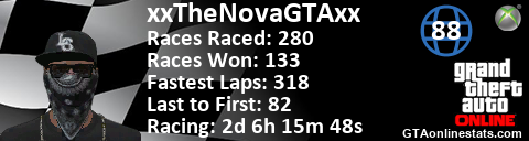 [URL=http://GTAonlinestats.com/showplayer/xxTheNovaGTAxx][IMG]http://GTAonlinestats.com/racesignature/xxTheNovaGTAxx/sig.png[/IMG][/URL]