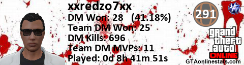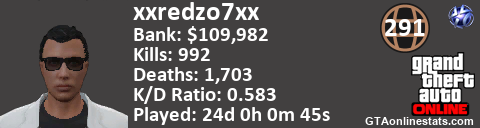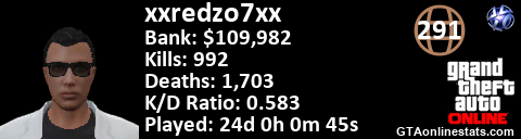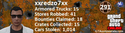 [URL=http://GTAonlinestats.com/showplayer/xxredzo7xx][IMG]http://GTAonlinestats.com/signature/xxredzo7xx/sig.png[/IMG][/URL]