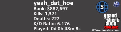 [URL=http://GTAonlinestats.com/showplayer/yeah_dat_hoe/2][IMG]http://GTAonlinestats.com/dmsignature/yeah_dat_hoe/2/sig.png[/IMG][/URL]