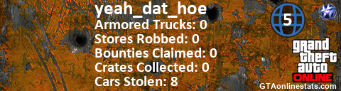 [URL=http://GTAonlinestats.com/showplayer/yeah_dat_hoe/2][IMG]http://GTAonlinestats.com/crimesignature/yeah_dat_hoe/2/sig.png[/IMG][/URL]