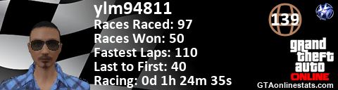 <a href="http://GTAonlinestats.com/showplayer/ylm94811"><img src="http://GTAonlinestats.com/racesignature/ylm94811/sig.png" alt="ylm94811" border="0" /></a>