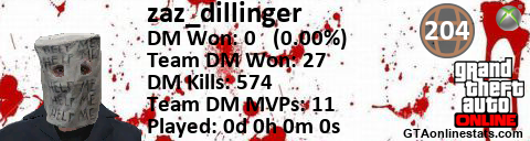 <a href="http://GTAonlinestats.com/showplayer/zaz_dillinger"><img src="http://GTAonlinestats.com/dmsignature/zaz_dillinger/sig.png" alt="zaz_dillinger" border="0" /></a>